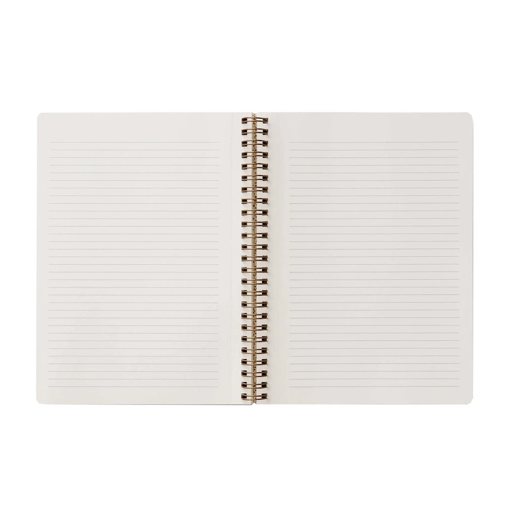 Hit the books with Rifle Paper’s softcover spiral notebooks, featuring full-color covers with gold foil accents, printed on a heavy-weight textured paper. The notebook has 150 ruled pages, a sturdy double-spiral binding, and pockets for storage.