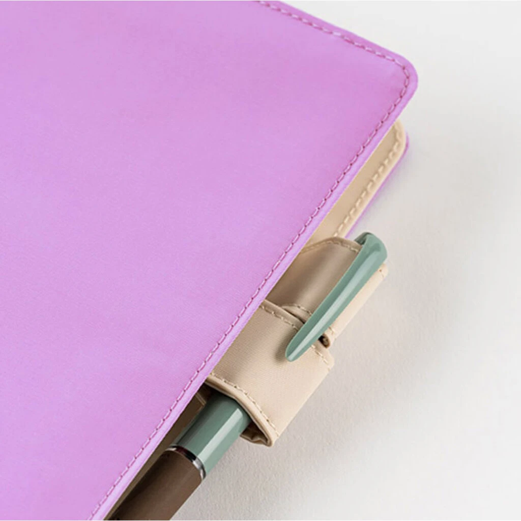 The soft light purple color of “Violets” reminds you of violet flowers. We selected pale beige for the “butterfly-stopper” pen holders and the inner cover for an elegant impression. This cover will help you feel calm and relaxed whenever you pick up your techo.