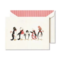 Crane’s beloved Holiday Penguins know a thing or two about the festive season. Stylishly accessorized, this playful crew engraved black, white, red, and gold on snowy white cotton paper, make it impossible to forget that the holidays are made for merriment with loved ones.