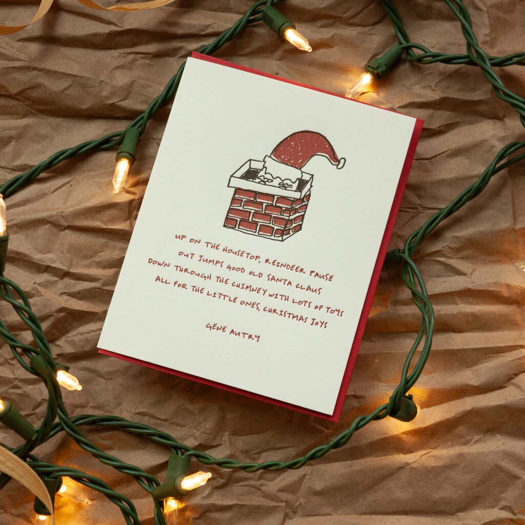 up on the housetop, reindeer pause, out jumps good old santa claus, down through the chimney with lots of toys, all for the little ones, christmas joys