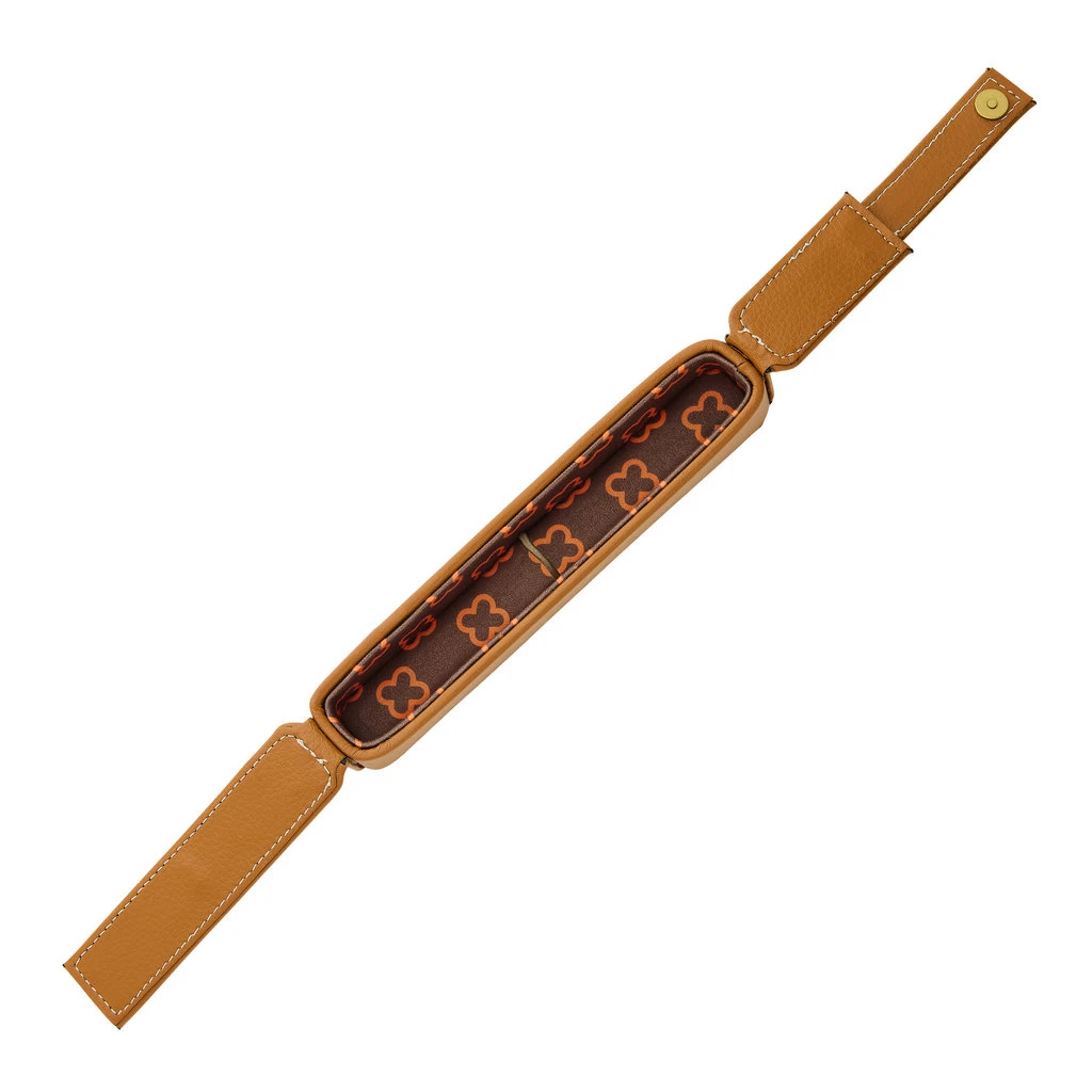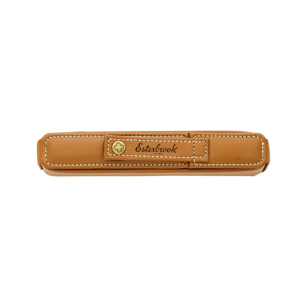 Meet the next in the series of Esterbrook Nooks. For this edition, Esterbrook has gone across the pond and chosen a beautiful British Tan to house your favorites and everyday carries. The look is classic car interior and makes a perfect companion for the office, road trip, or pen show. Consider it a boot for your pens! They’ve paired grained British Tan leatherette with contrast white stitching, gold hardware, the logo Esterbrook Eternity snap and lined the interior with the Esterbrook Eternity symbol in brown and orange. Each Nook has a flap that easily snaps and unsnaps to reveal your collection, which is housed in individual, cushioned sections, and secured with elastic for safekeeping.