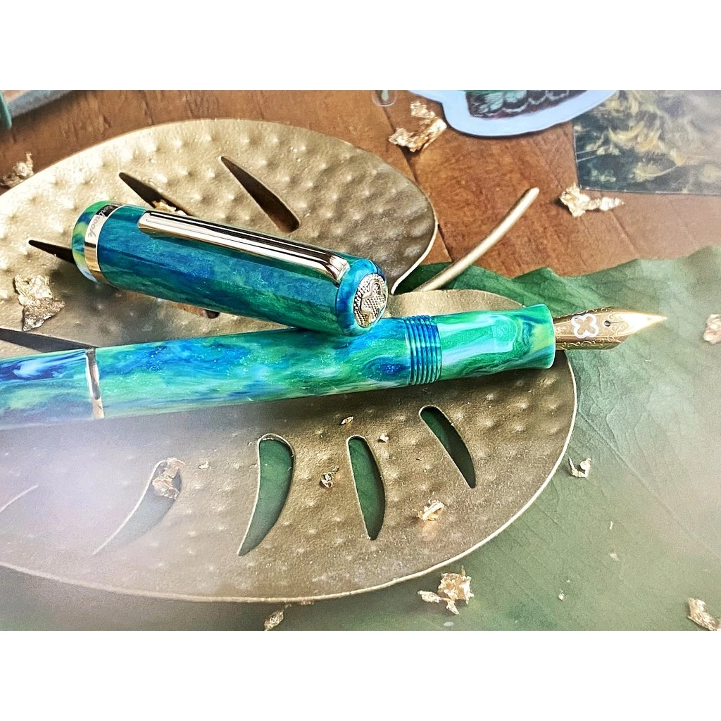 With this in mind, we’re thrilled to announce our newest limited time release, the JR Beleza! Meaning “beauty”, what better name for this vibrant addition to our JR collection? Made from DiamondCast, this pen has a luxurious sparkle to it that lives up to its name. New attention has been given to the JR line, which is a great pen option for those who are looking for a vintage-inspired, travel-friendly pen that’s small but mighty.