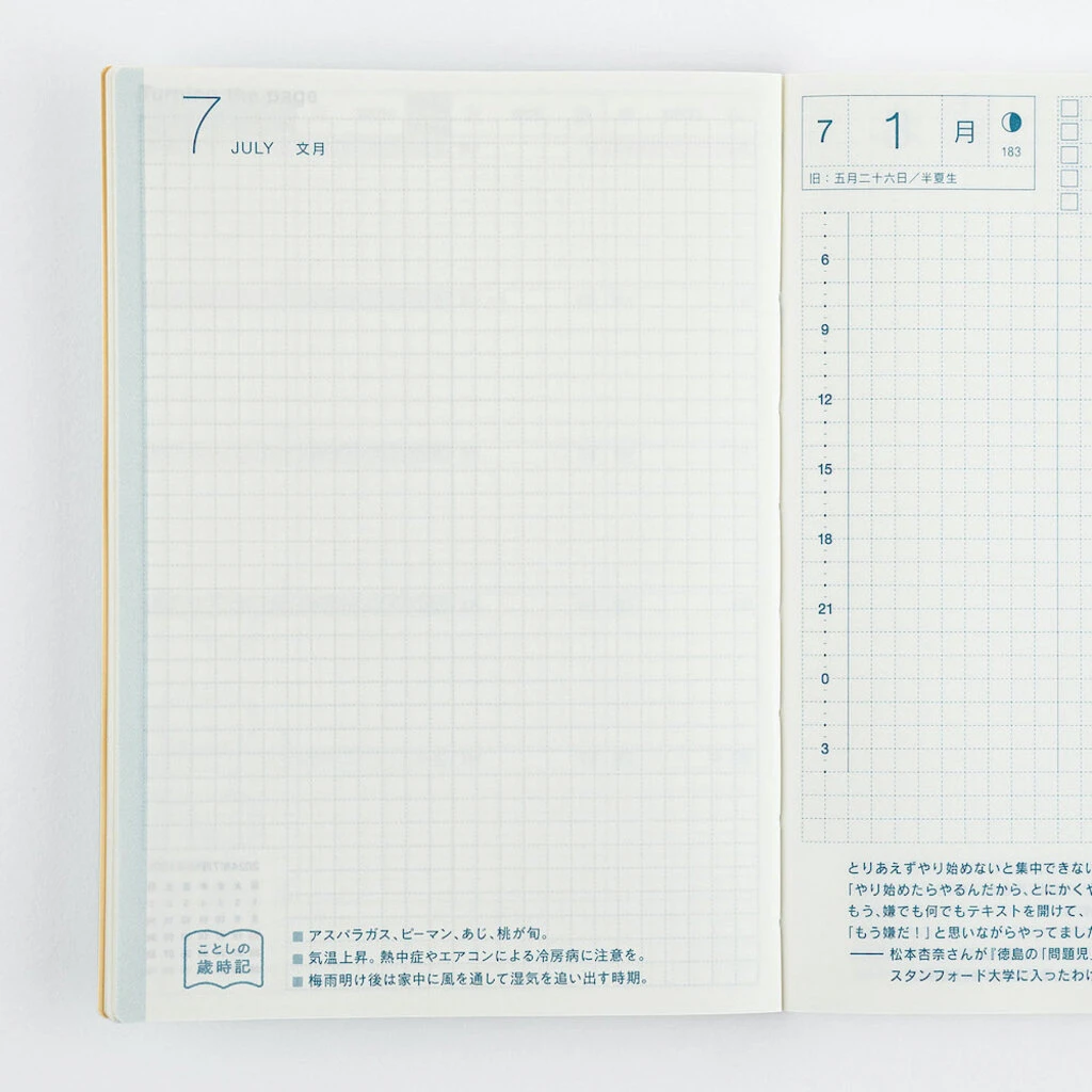 The Avec version splits the A6 Hobonichi Techo Original, design and all, into books of six months each with only slight variances in calendar spans and the number of extra pages in the back. This allows you to fill the pages to your heart’s content with scheduling, diaries, little notes, tickets, photographs, doodles, and anything that strikes your fancy.