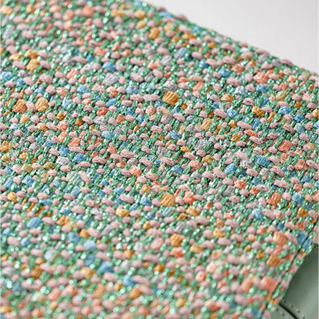 The base is a shimmering green glitter thread, which befits the name “Twinkle,” and is tightly woven with threads in nuanced colors of pink, blue, lavender, and other colors. This textile has a three-dimensional feel, and the threads are not only in different colors but also in different thicknesses. It looks like a field of flowers or city lights, which you will never grow tired of looking at.