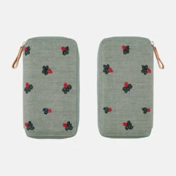 The cover’s cream-colored cotton material is given a pop-art look with green, black, and silver shapes drawn organically around the design. The green and matte black sections are silkscreen printed, while the silver and shiny black sections are foil-printed, giving the cover an elaborate design.