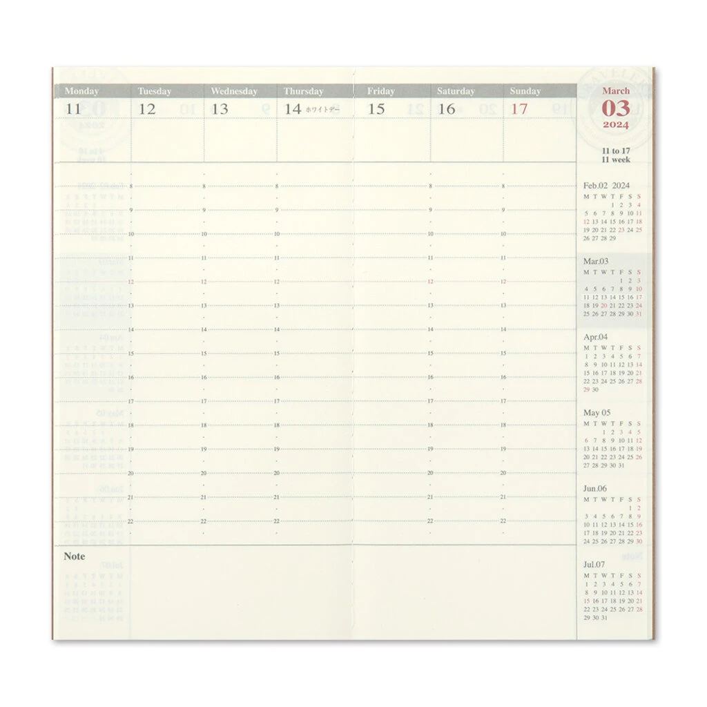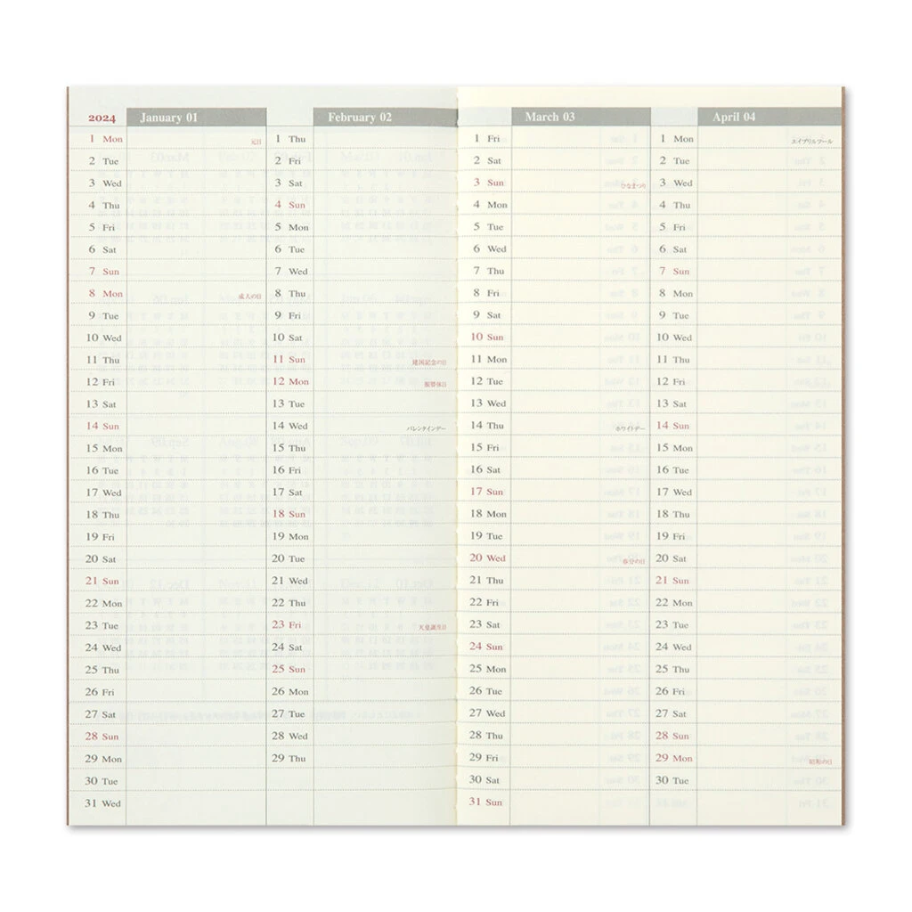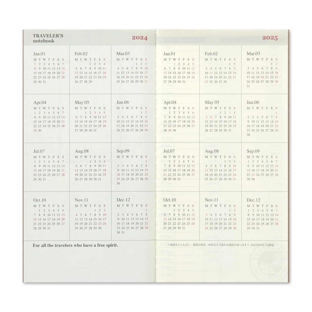 This is 2024 Diary Weekly Vertical-type for TRAVELER’S notebook.