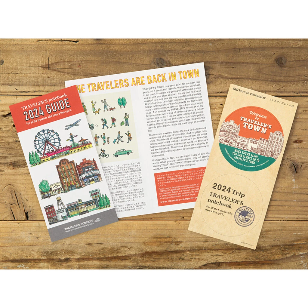 The 2024 versions of our Plastic Sheet, Clear Folder, and Customized Sticker Set feature a design themed around a TRAVELER’S TOWN that warmly welcomes travelers.