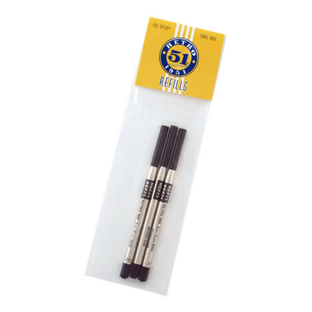 Pack of three black refill cartridges for Retro 51 ballpoint pens