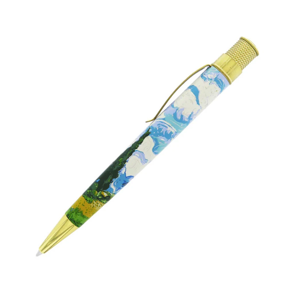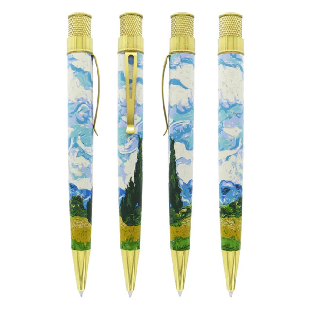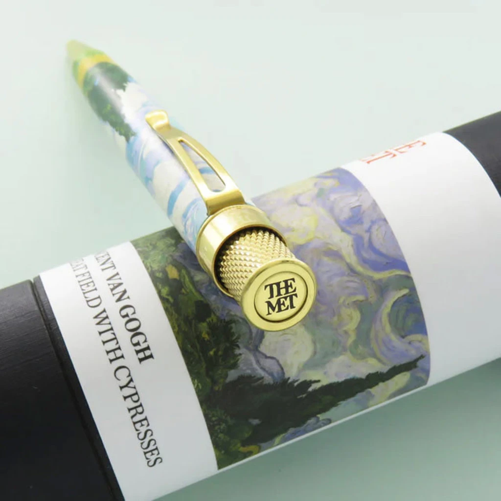 Retro51 is honored to present this new rollerball pen based on the master artist’s groundbreaking work. Multiple colors have been silk-screened onto the stainless barrel to recreate this artwork, framed with polished brass accents. The Met logo is featured on the top ring and finial with a numbered top disc. This pen comes in commemorative packaging tube with a base that can double as a pen stand when it is not in use. Add a van Gogh to your writing collection and discover new creativity at your fingertips.