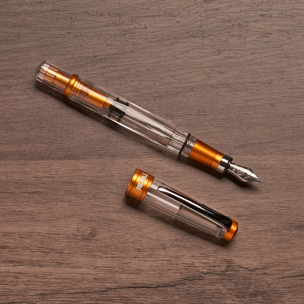 The TWSBI Diamond 580AL comes with a benchmark piston ink-filling mechanism and has all detachable parts. The clear demonstrator barrel allows you to see your ink color and remaining ink level. It comes with a stainless steel nib and aluminum machined grip, connector, and piston rod.