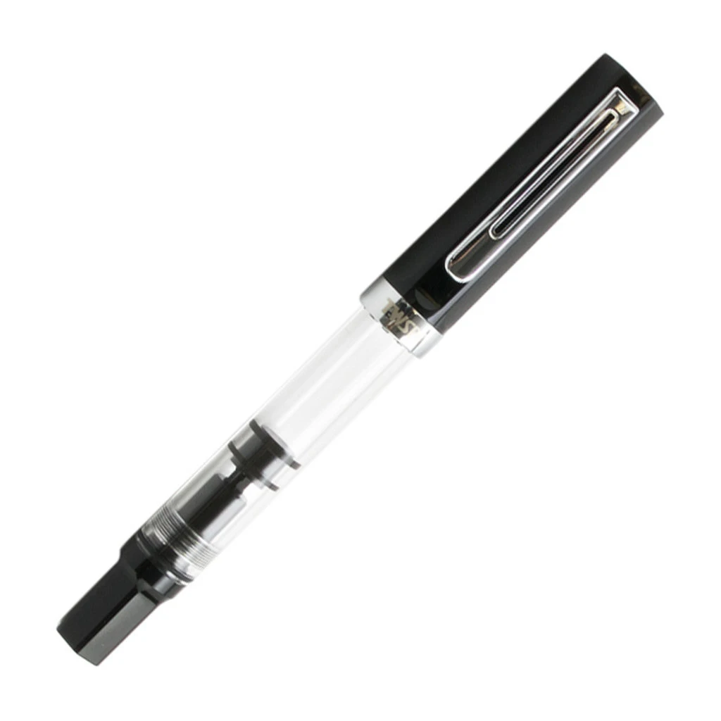 A piston filler fountain pen. Simply unscrew the end cap, dip into ink, screw back the end cap, and you’re done! Ready to write.