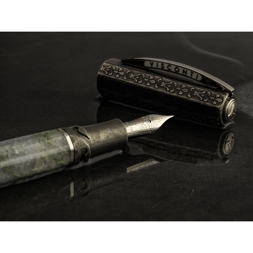 This collection celebrates Lorenzo de’ Medici’s great passion for art and Florentine tradition. The pen’s body is made of fine Italian ‘Verzino di Frabosa’ green marble. Verzino marble is known for it’s delicate streaks that range from grey to green giving the pen its delicate and elegant appearance. The marble body is octagonal shaped and inspired by the Baptistery of Florence, formed using specific, high-precision machinery.