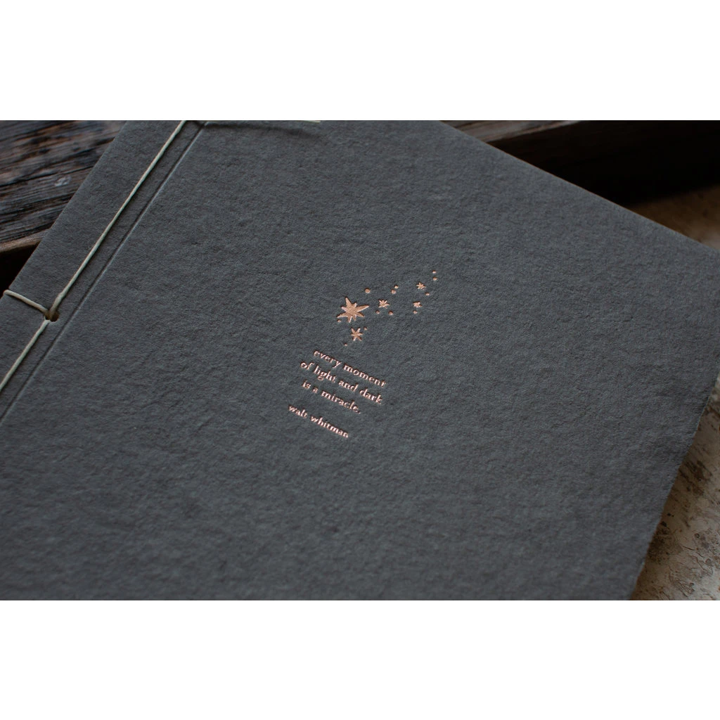 our inspiration journal collection features a minimal design with striking quotes from prominent individuals on a handmade paper cover. carefully hand-bound in our portland paper studio.
