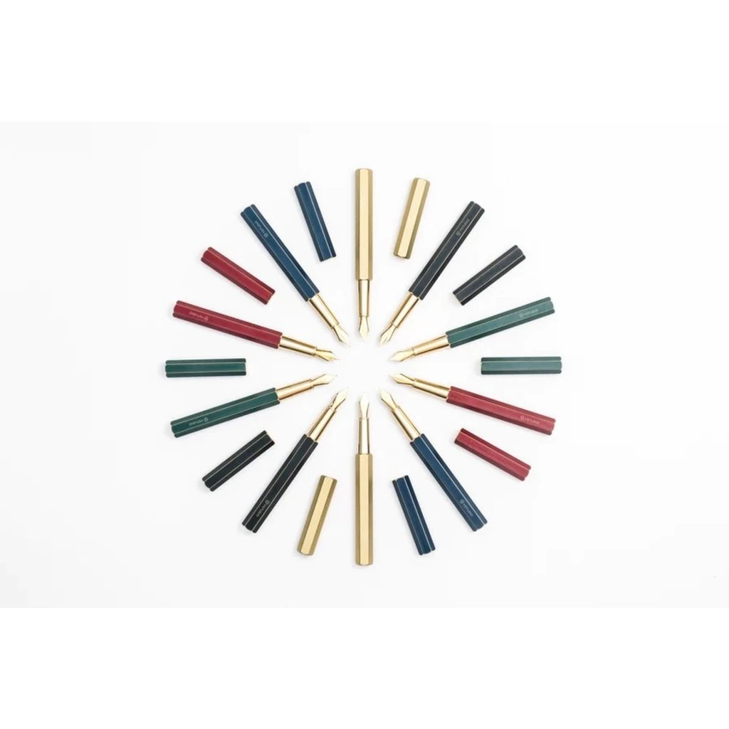 Cut from solid brass, the pen’s hexagonal body follows the brand’s most popular design, pure and simple, with a thicker pen body and just the right balance of weight and solidity.